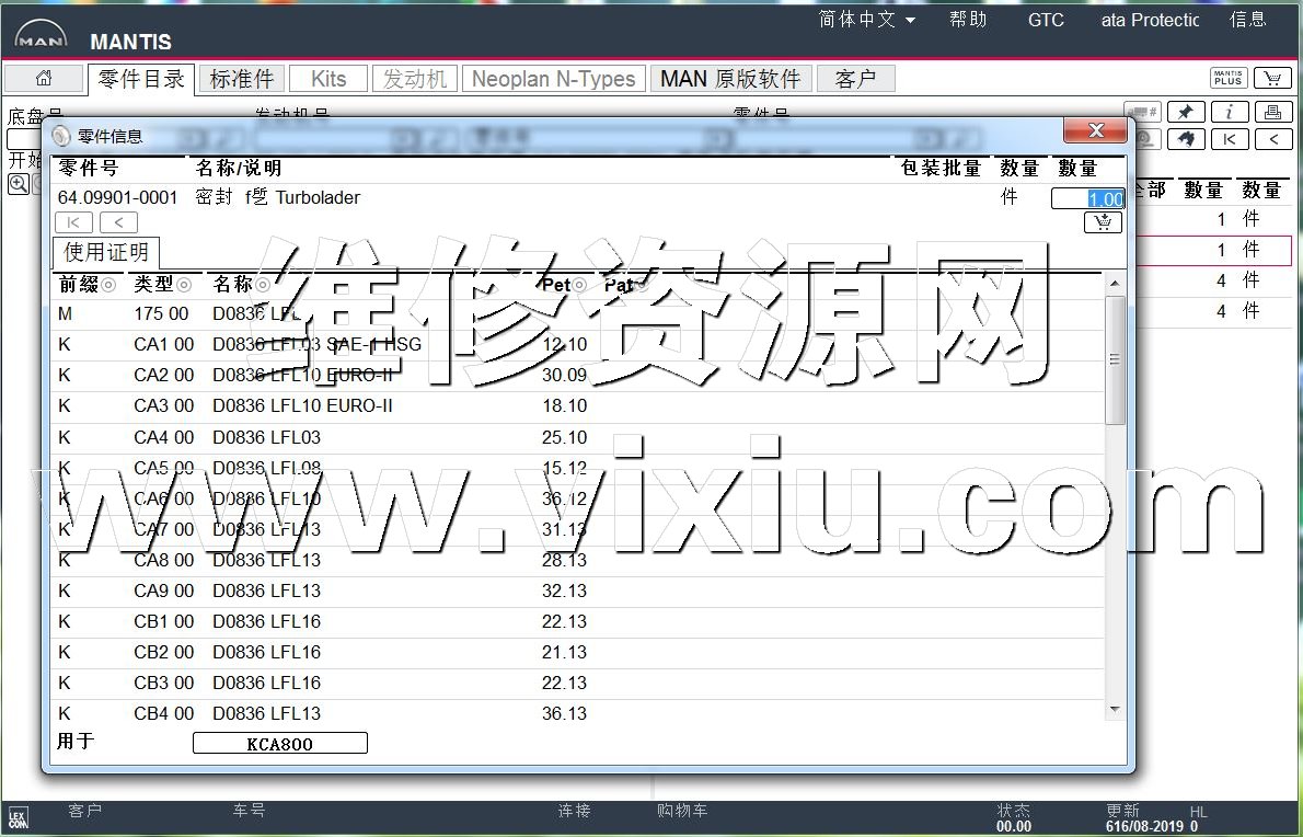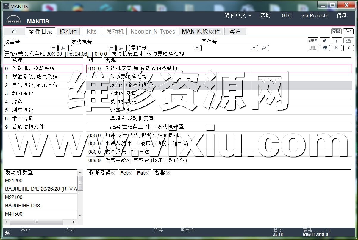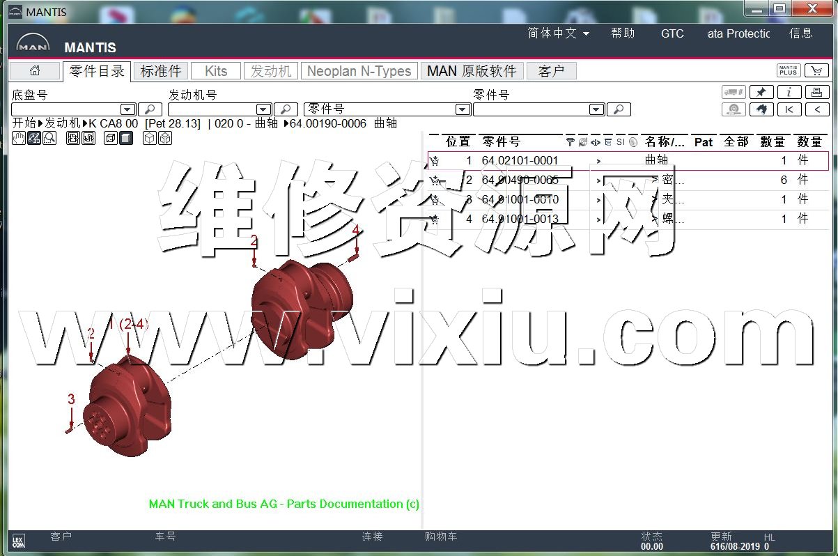 | 2019年8月MANTIS曼卡车客车发动机配件目录零件图册软件 | |||||