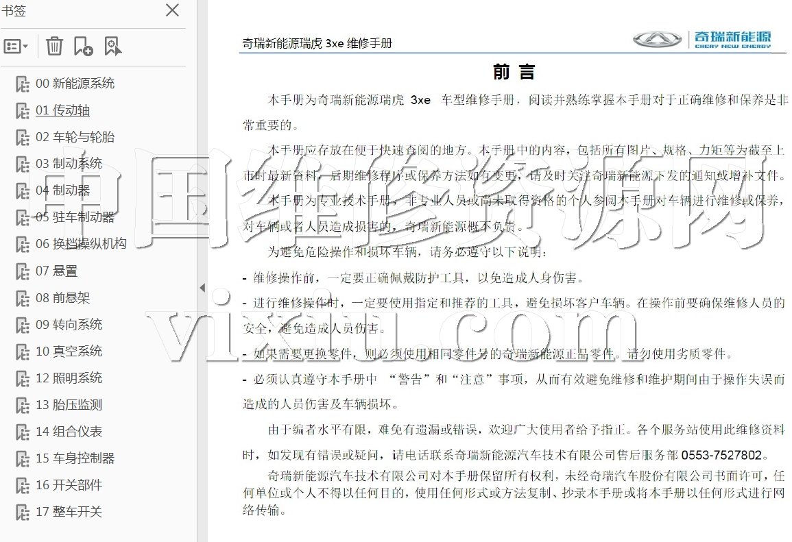 | 2018款奇瑞新能源瑞虎3Xe电动汽车维修手册 | |||||