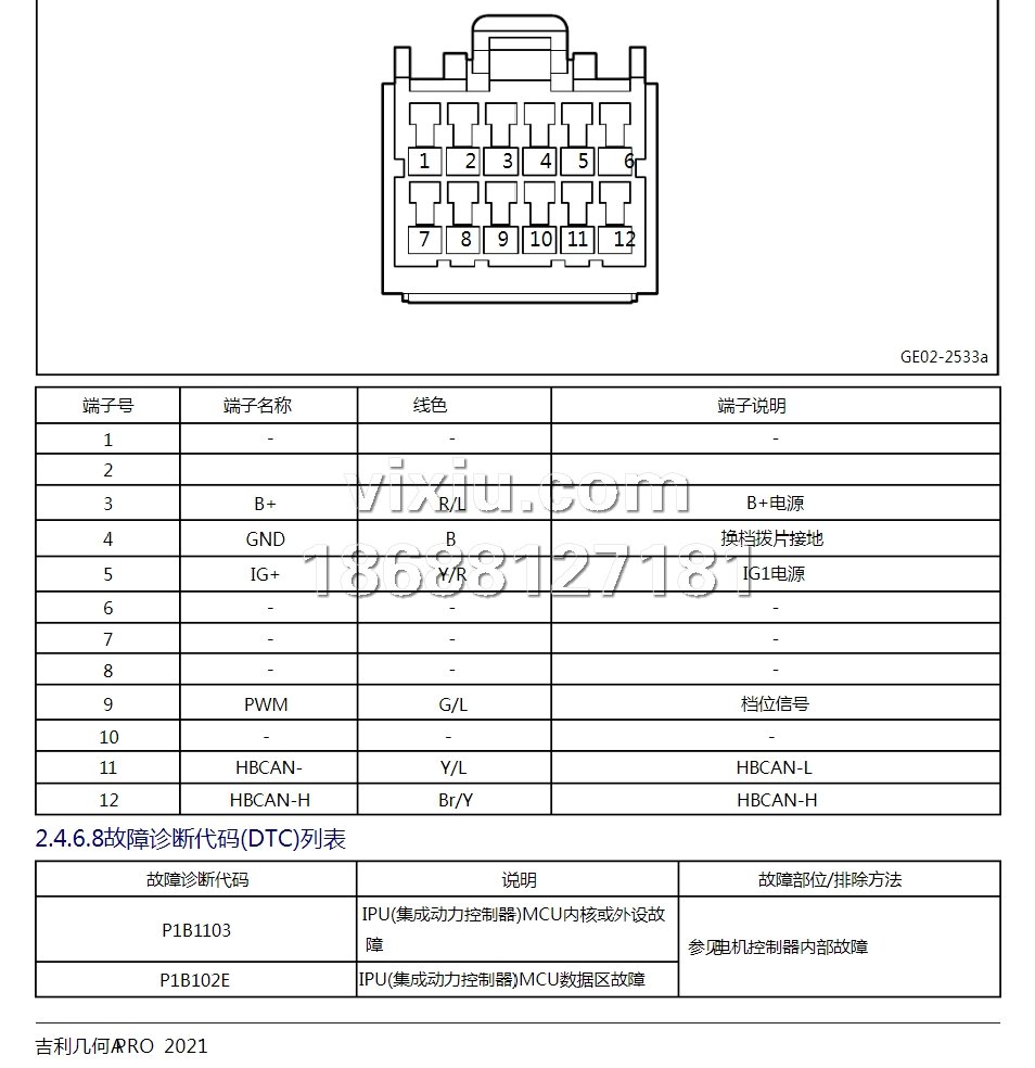 | 2021-2020款吉利几何A Pro电动汽车维修手册带电路图资料 | |||||