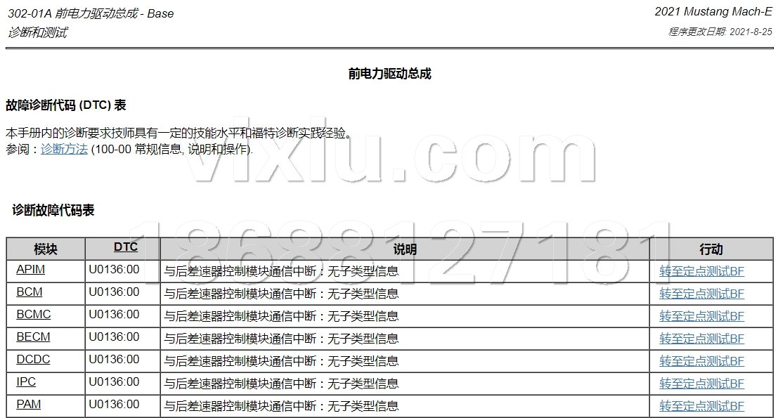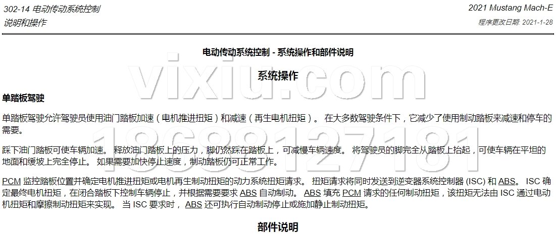 | 2021年款福特野马电动Mustang Mach-E维修手册带电路图资料 | |||||