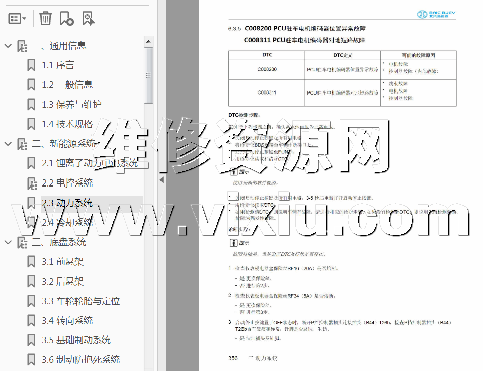 | 2019款北汽新能源EX5电动汽车维修手册带电路图 | |||||