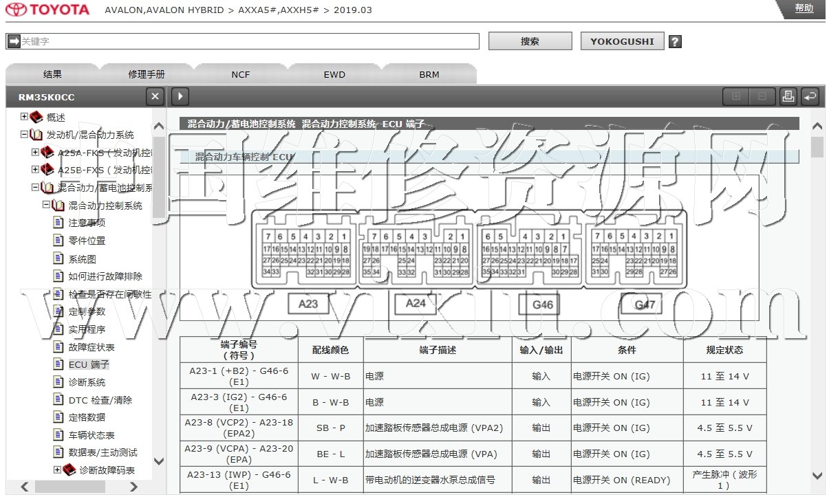 2019款丰田亚洲龙HEV油电混动汽车维修手册带电路图资料