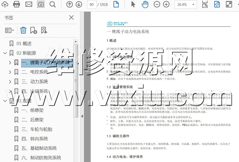 2018款北汽新能源EC3电动汽车维修手册带电路图资