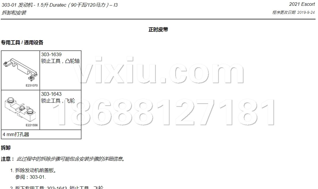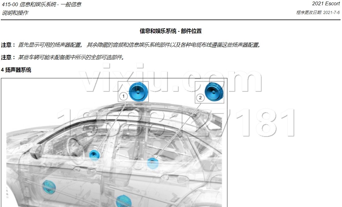 | 2021年款长安福特福睿斯汽车维修手册带电路图资料 | |||||