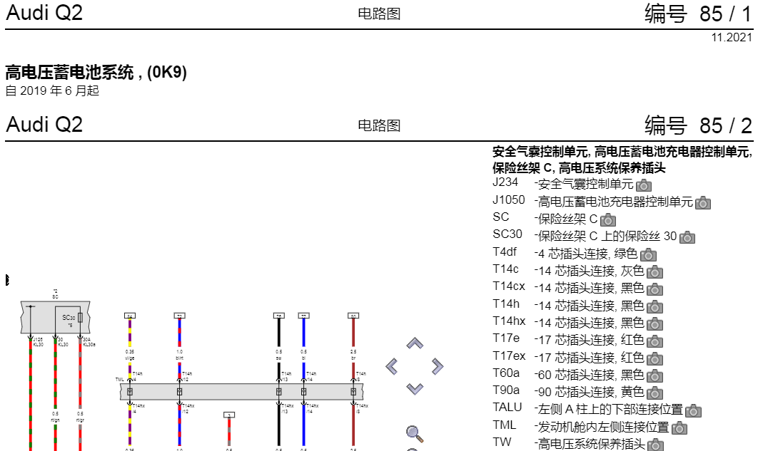 2020年款一汽奥迪Q2L E-TRON电动汽车电路图维修资料