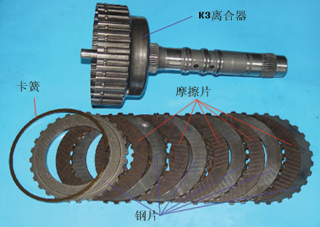 故障排除:在更换离合器K3摩擦片,装复后试车正常。