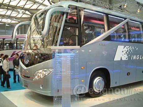 在设计方法和执行中,也大胆的把最新的设计方式带入到过程中,用实际的效果去说明整个团队。设计在线.中国 此项目计划"全新金龙客车设计实案k01"的整个设计过程:由金龙客车研发部门与浩汉设计(NOVA DESIGN)紧密合作,导入新的设计技术与流程,执行的主轴可以说有三个大的原则即:设计数字化、流程专业化与开发生产合理化;从初期以客户实际背景市场竞争的态势分析为企划导向,探讨产品的风格及定义设计策略,到效果图提案,结构工程研讨、模型建造与修整定案;整个过程都是应用数字三维的技术(CAID、CAD、CAM、CAE),作到高效益高质量的同步工程设计。金龙及浩汉设计(NOVA DESIGN)的整个团队也非常有信心在这一新车的基础上,不断的继承与创新,把金龙的更多产品引入未来。 后记: K01-1外观设计结合了国际流行趋势和国内审美特点,突破客车平直造型局限,整体印象简洁流畅、刚毅威猛。K01-1大量采用夸张的转折面,前后围的"V字"造型遥相呼应。前围饱满富有力度,自然向下过渡,与前挡玻璃浑然一体,既体现美感又有效降低风阻;前灯造型设计独特,美观大方,稳重中不失活泼;侧围两条银色装饰线犹如两把飞剑,脱鞘而出,向上无限延伸,在展示阳刚和力度的同时,增添极强的速度感;超大车窗,视野开阔,时尚霸气的外形,整车美学与实用性完美结合,给人赏心悦目之感。