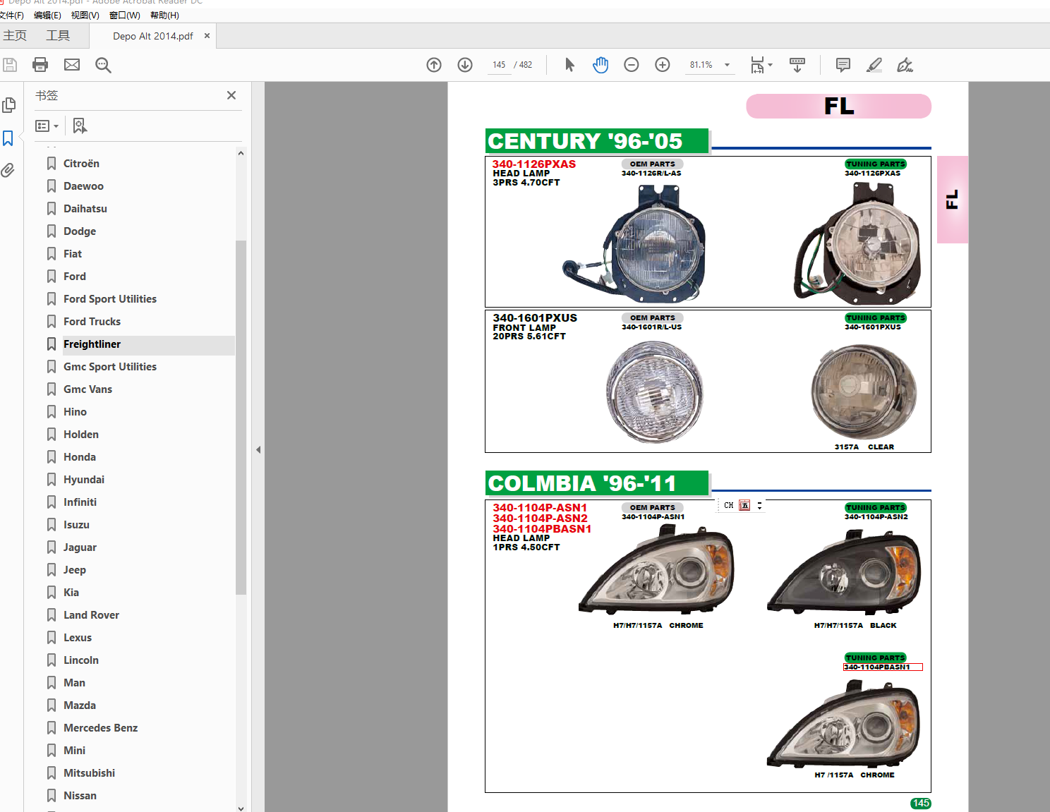 | DEPO帝宝零件图册部件手册帝宝汽车车灯照明总成电子配件目录 | |||||