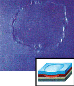 修补的区域下陷,面漆表面形成“湖泊”形状的外观。