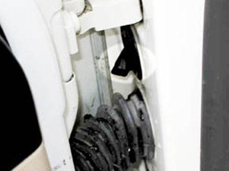 图2 A柱上的排水口 2.当天窗出现运动缓慢或无法向某方向运动时,首先应排查机械方面的原因,例如是否因为滑轨积尘过多导致电机工作阻力过大,必要时应对电机进行初始化操作。应避免长时间按压操纵开关而导致电机过热。 |