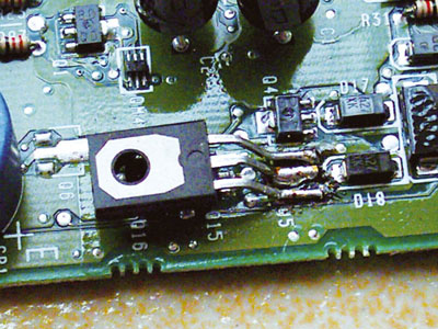 笔者决定用一只B649A中功率晶体管替换,在确认好管脚排列后,将其焊在电路板上(图2),再将车门多路控制装置装回多路控制板总成上。操纵主控开关上的左后车门玻璃升降开关,玻璃升降自如,故障完全排除。 |