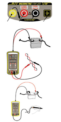 使用过程中,将测试仪与车辆蓄电池连接(如图)。使用者通过按钮选择自己想要控制的网路类别,如CAN(H)、CAN(L)或VAN,然后将车辆CAN(H)/ DATA或CAN(L)/ DATA连接到插孔B或C,再读取仪器上的网路数据。将测试笔插入测试仪的插孔A,并将测试笔的测试针与接头、电线接触来进行测试。 在此举例说明汽车CAN总线测试仪在故障诊断中的应用。一辆1999年产捷豹轿车,用户反映仪表板上的ABS、悬架及驱动防滑系统的故障警告灯同时报警。根据故障现象分析,笔者认为这个故障应该是这些线路的公共部分出了问题,于是决定利用汽车CAN总线测试仪进行检查。先对ABS至PCM之间的数据线进行静态测试,结果线路正常;接着笔者又测量了PCM至悬架控制单元间的数据线,也无问题。拆卸左前门内的饰板,在车门的下部找到了DDM模块,并找到了4根数据线,还未测量时,笔者突然发现DDM插头松动。遂用力插紧此插头,打开点火开关,此时车辆通过自检,仪表板显示屏上警告灯全部熄灭,路试发现故障排除。