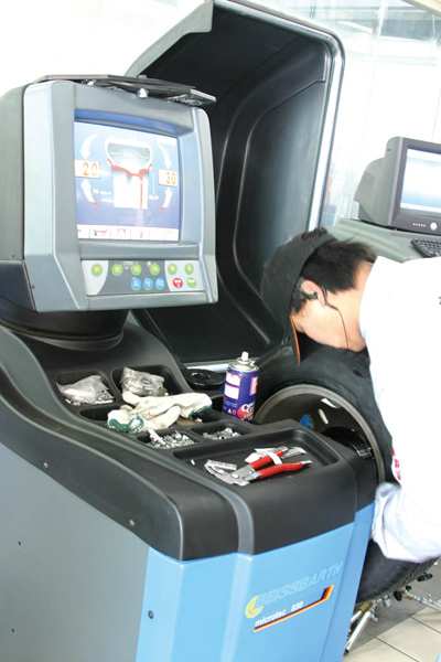 车轮平衡及定位,作为维修中的常规检测项目,要采用车轮平衡仪、四轮定位仪和一些辅助设备进行必要的检查。当汽车在运行中出现转向盘抖动、制动跑偏以及转弯过度或不足等症状时,就需要进行相关检测了。在此以车辆进厂维修工序为主线,针对车轮平衡及定位需要采用的设备工具及相关检测技术进行分析。