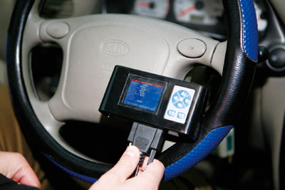 故障4:一辆2004年产东风悦达起亚千里马1.3 GL轿车,经常出现加速不畅和怠速不稳的故障。检查进气系统和燃油供给系统均正常,用故障诊断仪进入发动机电控系统也没有查询到故障(图5)。起动发动机怠速运转,通过读取数据块检查喷油量和节气门开度,均在正常范围。怠速状态下检查蓄电池电压不正常,在12 V左右波动。因为故障诊断仪所读取的蓄电池电压,是在发动机尚未起动时的蓄电池端电压。当发动机起动后,则为发电机的发电电压,由此可以判断出发电机和蓄电池之间存在异常。为了增加发电机负荷,打开大灯和空调系统,蓄电池电压降低至11 V,并且波动较大,由此可以判断出发电机充电系统不正常,充电线路可能有问题。经过检查电路,发现蓄电池负极线在变速器壳体上的固定端断掉,从而使得大负荷用电设备工作负极线分压太大,导致发动机控制单元供电电压波动和传感器信号不准确,出现了上述故障。将相关负极线进行紧固连接后,故障得以排除。 随着汽车新型传感器的应用,各种各样的数据还在增加,例如:POLO轿车空调系统安装的电子型制冷剂压力传感器G65,使用故障诊断仪进入空调系统,读取制冷剂压力数值,当已知制冷剂温度时,可以判断出空调系统制冷剂R134a加注量是否正常。这些数据的读取对于诊断故障都有很重要的参考价值。 4.重视数据状态信息的含义 故障诊断仪读取的控制单元中的数据信息表示方式多种多样,单位也不一样。比如,POLO轿车节气门的开度使用“%”的形式表示;自动变速器的多功能开关等开关状态信息以8位二进制码表示;发动机的防盗电子工作状态以4组“0”和“1”的数字表示;节气门的基本设置信息用一些特定字符表示其状态等。了解这些数据信息的表达方式和含义,有助于更加全面地了解控制单元的工作状态以及一些传感器、执行元件的信息。 故障5:一辆2004年产桑塔纳2000 GSi轿车,起动后会立即熄火,看似防盗系统锁死,然而防盗指示灯在打开点火开关后自检也正常。使用故障诊断仪查询发动机电控系统,有“发动机控制单元锁死”的故障记录,防盗系统控制单元无任何故障记录,看不出防盗系统有任何问题。再使用故障诊断仪读取防盗器工作状态信息,发现防盗系统控制单元的4组状态信息中,发动机控制单元的确定状态为“0”,与正确值“1”不符,怀疑是发动机控制单元和防盗器控制单元之间1根防盗确认的线路或防盗器控制单元有问题。通过万用表检查,相关线路正常,于是换掉防盗器控制单元(图6)并进行匹配,故障得以排除。