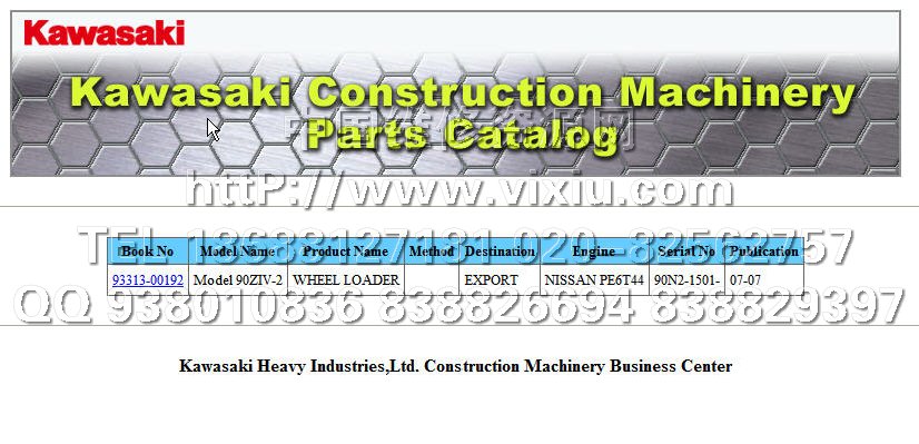 川崎装载机零部件图册零件手册电子配件目录零件号资料查询系统-Kawasaki Wheel Loaders Parts Catalog。 2010川崎装载机配件目录-Kawasaki Wheel Loaders Parts Catalog,包括川崎装载机全系列的机型。数据更新至2010年。 川崎装载机配件目录-Kawasaki Wheel Loaders Parts Catalog 2010 Kawasaki Wheel Loaders spare parts catalogs - (机型列表) Model Name AUTHENT 45ZA,45ZIV Model 60ZIV-2 Model 90ZIV-2 Model Name 65ZV Model Name 80ZV Model Name 70ZV-2 Model Name 80ZV-2 Model Name 90ZV-2