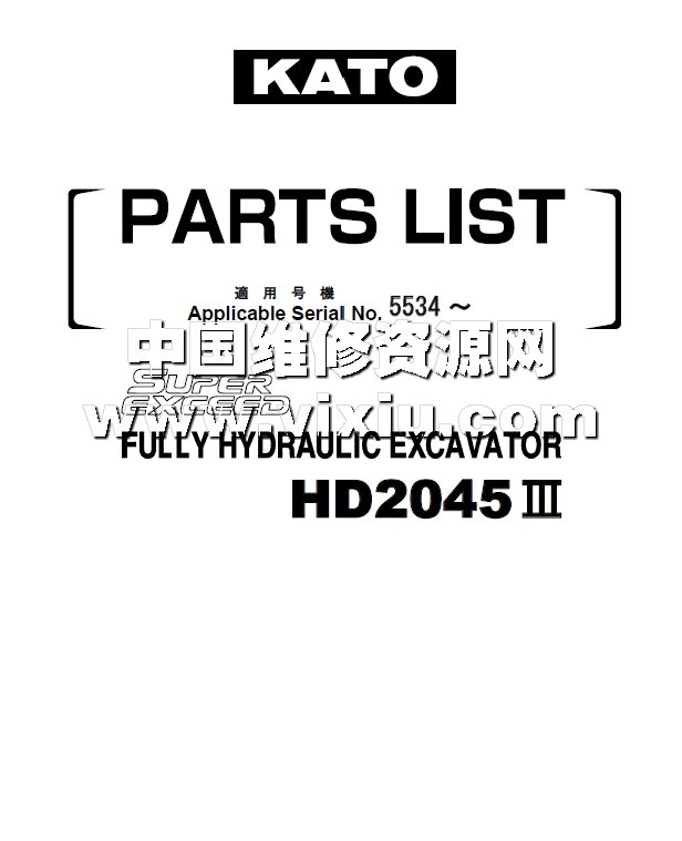 | KATOKATO HD2045-3加藤挖掘机零部件手册配件图册零件号资料 | |||||