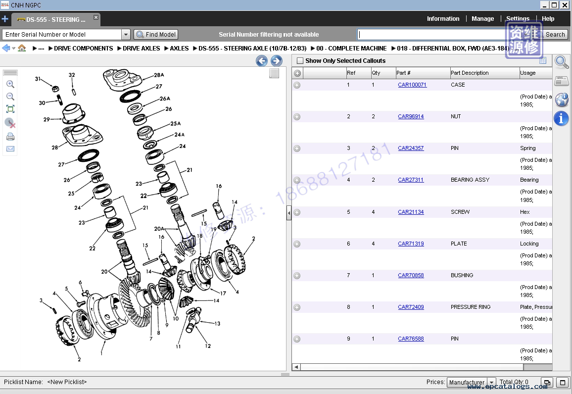 EPC新荷兰公司使用起来非常方便,因为它允许客户通过型号、序列号来查找零件,并给出了具体零部件在系列和型号上的应用信息。同时,零件目录支持多种语言,具有良好的界面。安装不需要特殊知识,也不会引起问题和问题。使用部件目录可以直接从CD中运行,也可以将磁盘安装到驱动器中。