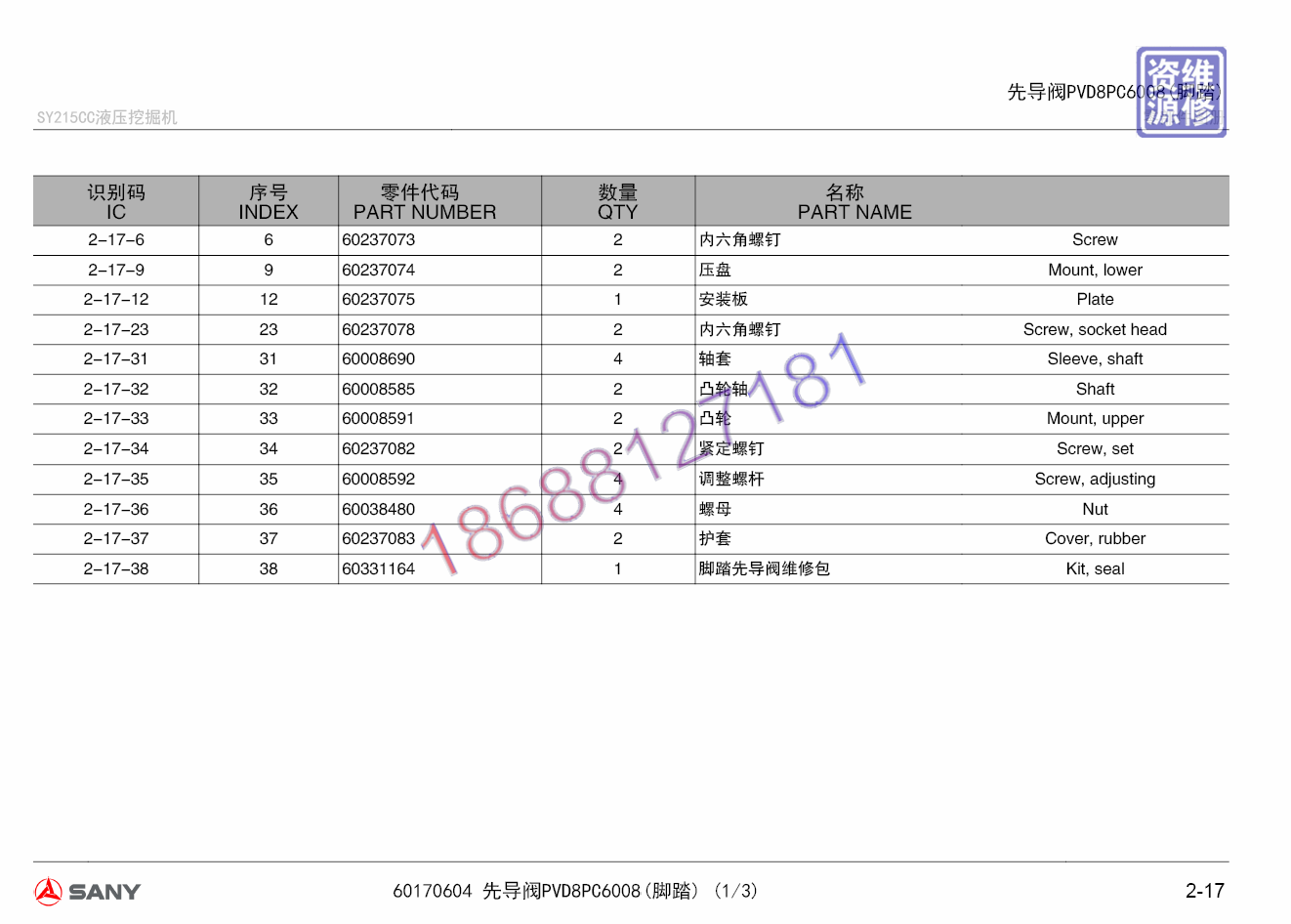 | 三一系列零部件图册三一电子零配件目录零件图册维修手册维修资料 | |||||