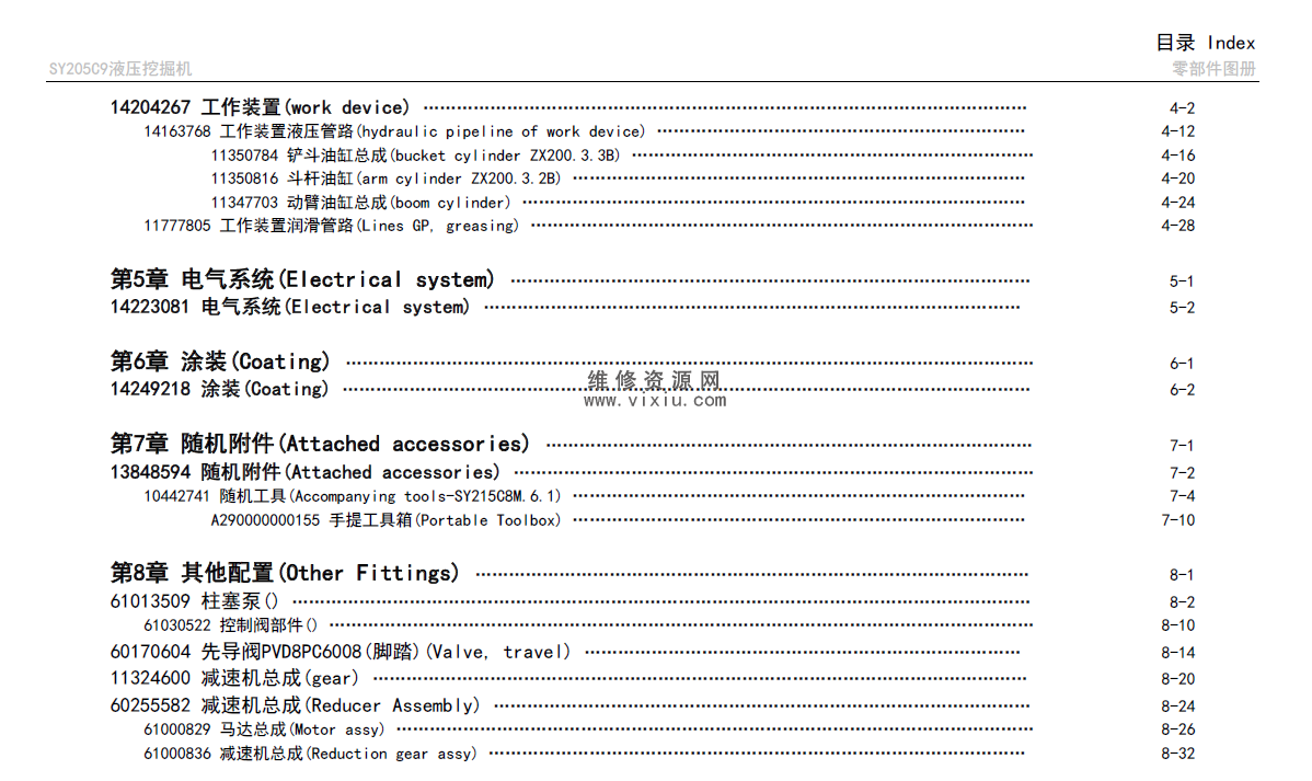 三一挖掘机全系列维修手册零部件图册三一全机型 零件图/液
