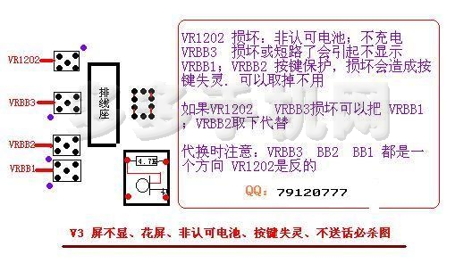 V3不显示/花屏/非认可电池/按键失