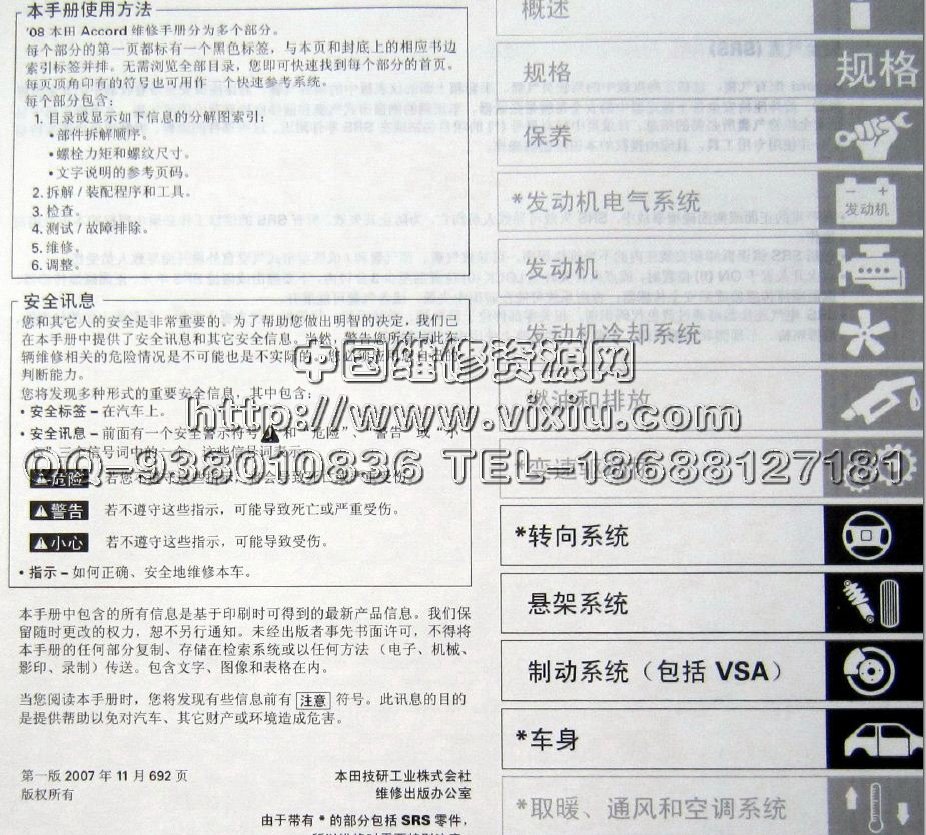2008-2012广州本田第8代雅阁维修手册 中国增补版