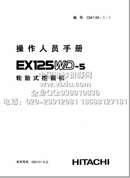 日立EX125WD-5轮胎式挖掘机操作人员手册图书详细资料