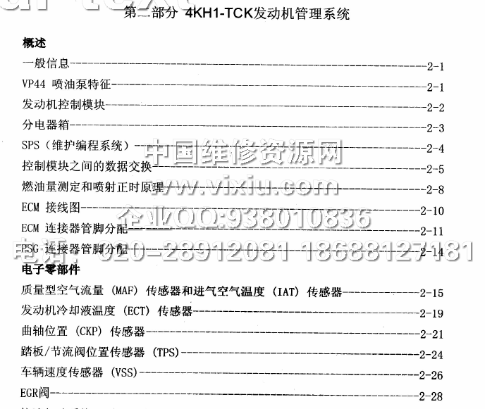 庆铃600P维修手册(4KH1-TCK)庆铃维修手册详细资料