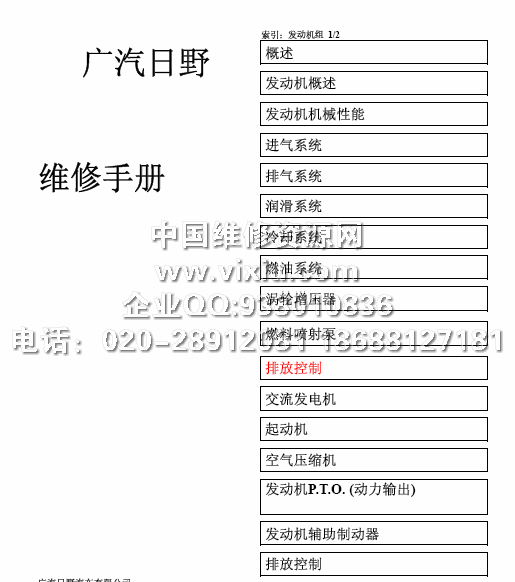 广汽日野700零部件图册 日野700系列FS2P重卡配件目录
