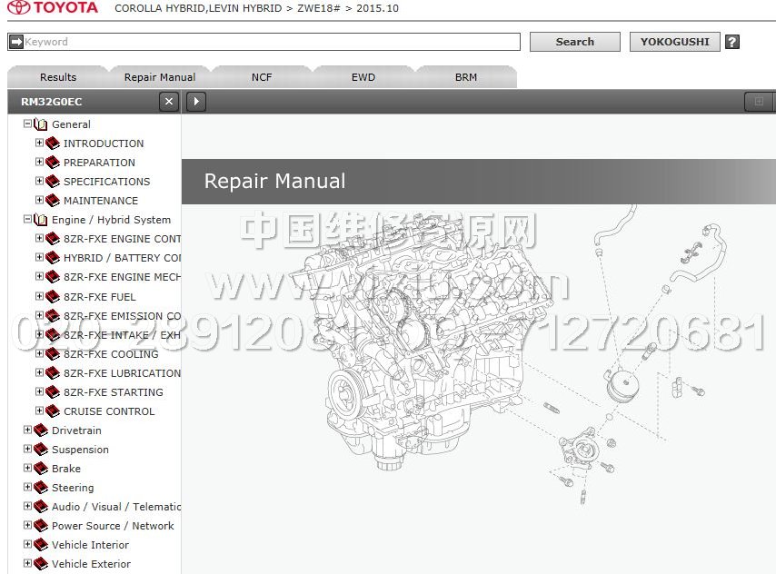 2016-2015款丰田卡罗拉-雷凌双擎油电混合动力维修手册带电路图资料(英文)详细资料