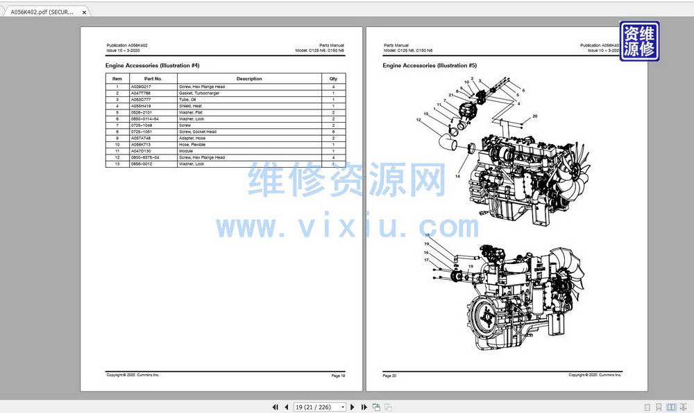 2020年新款康明斯发动机零件图册配件目录PDF详细资料