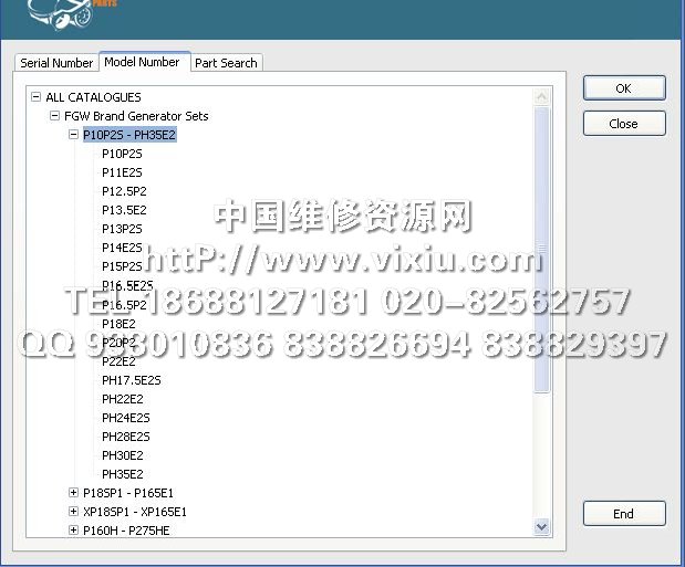威尔信发电机组零件目录查询系统,程序界面类同于PERKINS 数据为2006年