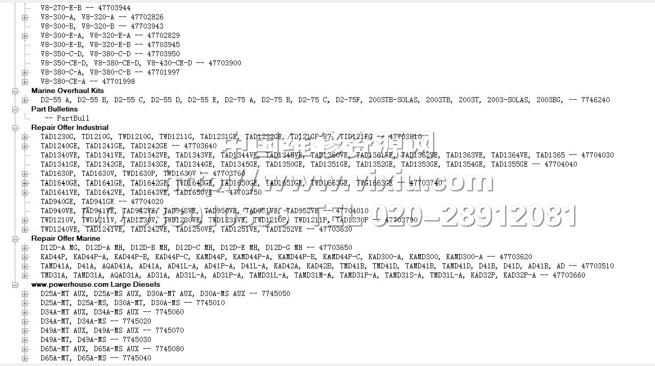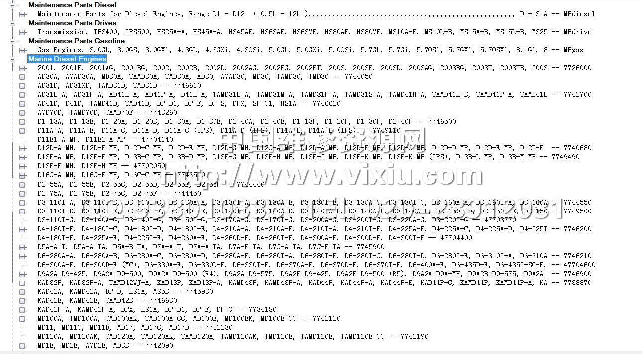 2013沃尔沃遍达VOLVO PENTA发动机电子配件目录 零件图册详细资料