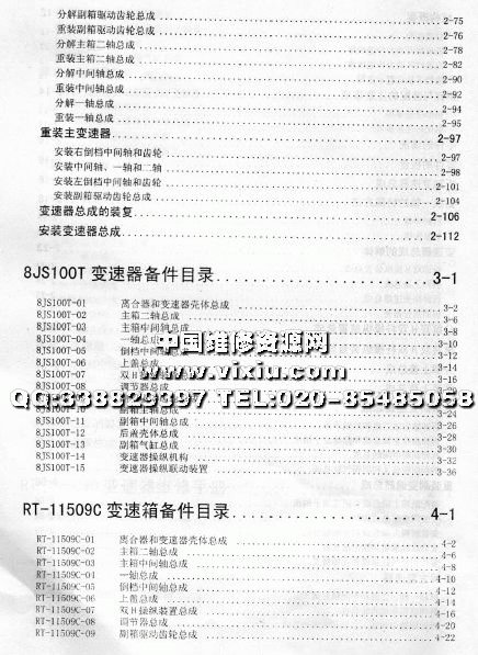 仅提供PDF文件,原厂高清扫描,有变速箱配件目录。规格为9档,11档。