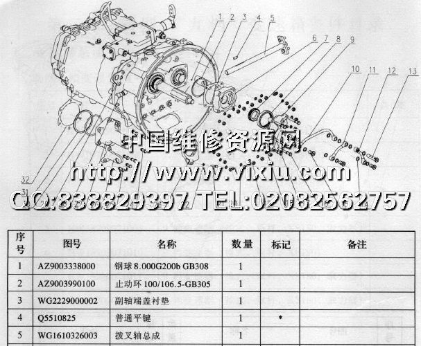 重汽新型九档变速箱备件目录及维修手册