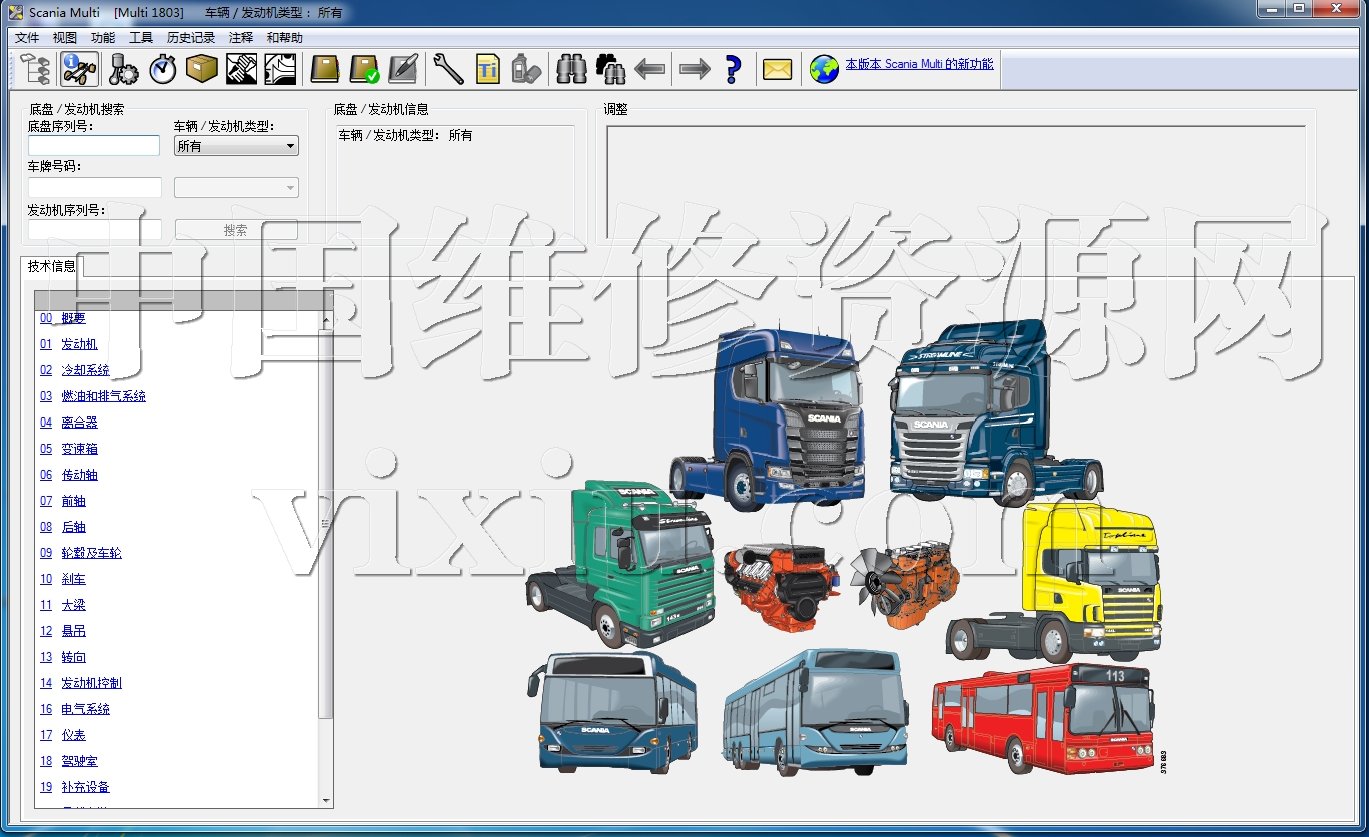 可查斯堪尼亚全系列卡车、客车与发动机等配件信息和维修资料,包括电路图