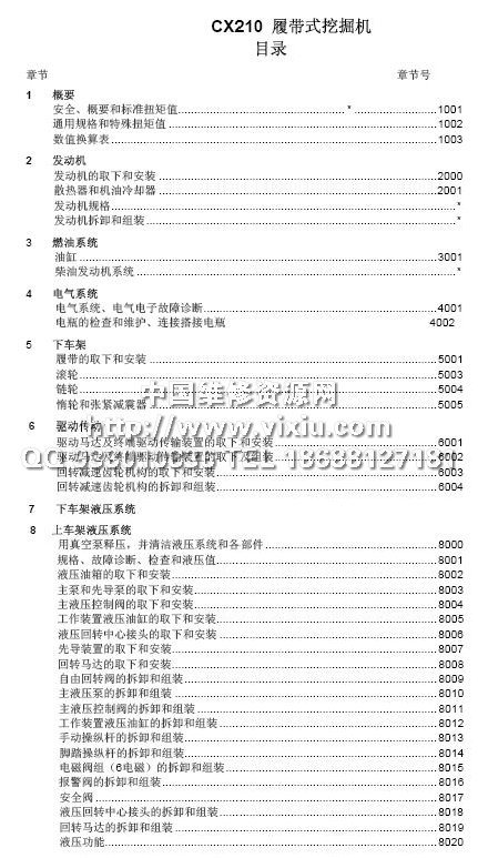 凯斯CASE CX210-240挖掘机维修手册