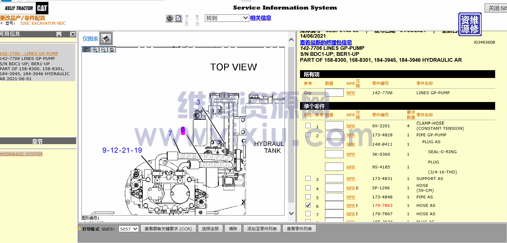 2021年10月Caterpillar SIS CAT SIS 2021C 卡特彼勒配件目录-维修手册、接线和液压图、油封油管尺寸详细资料