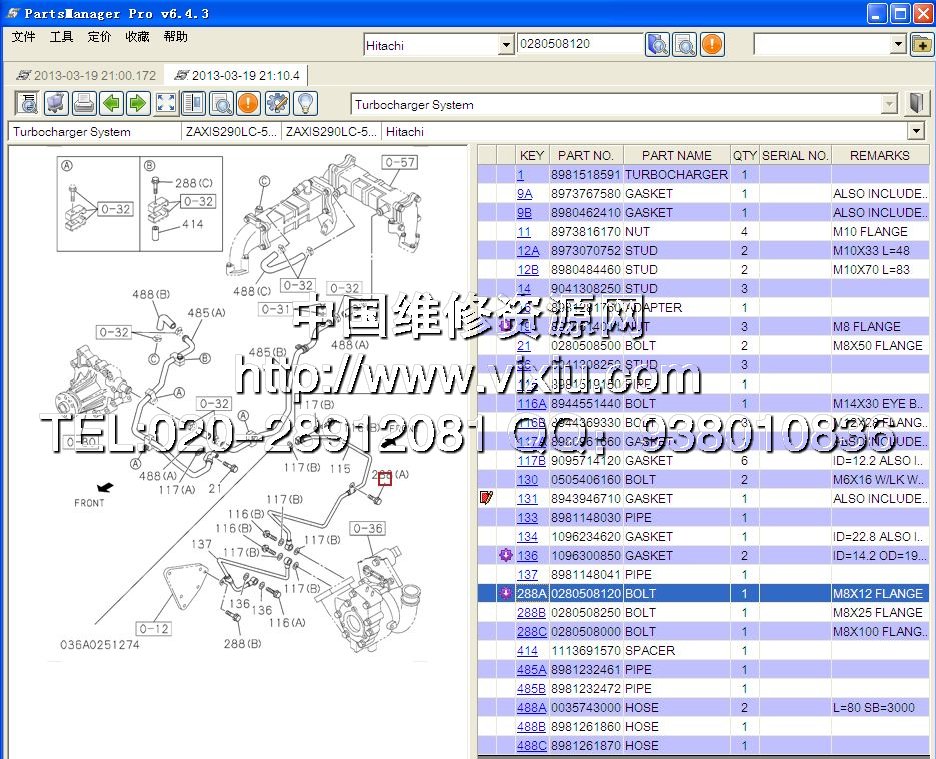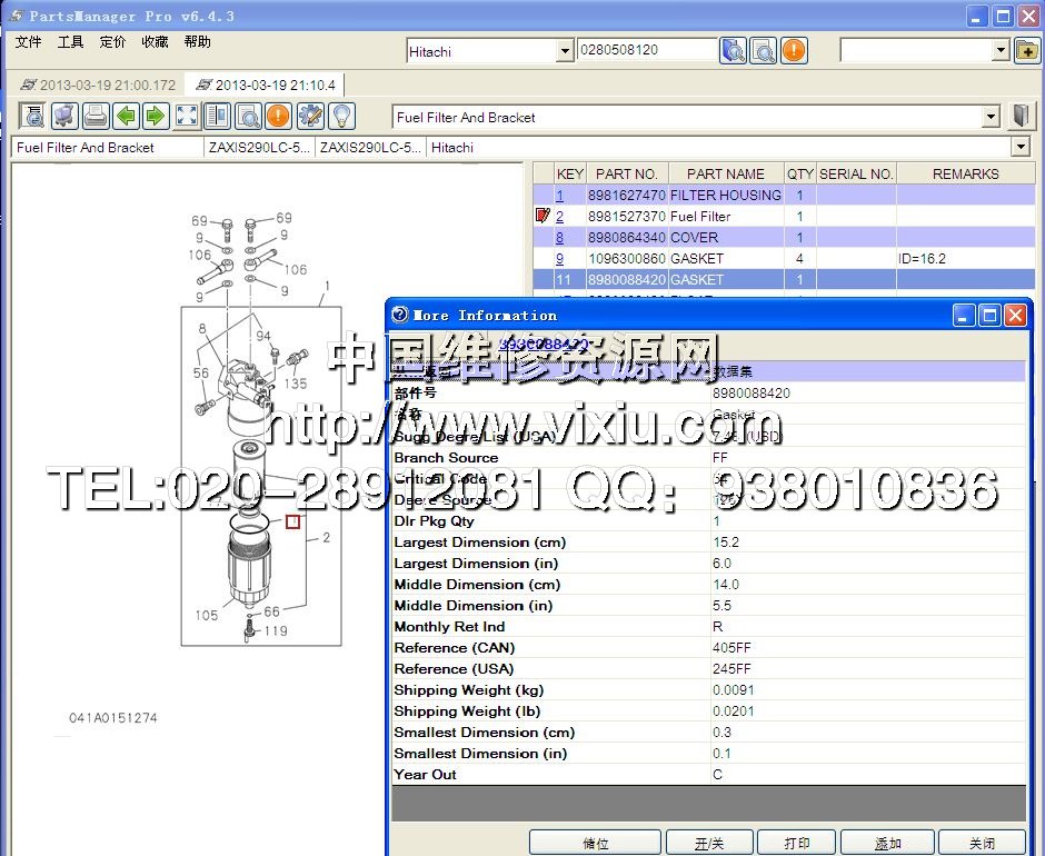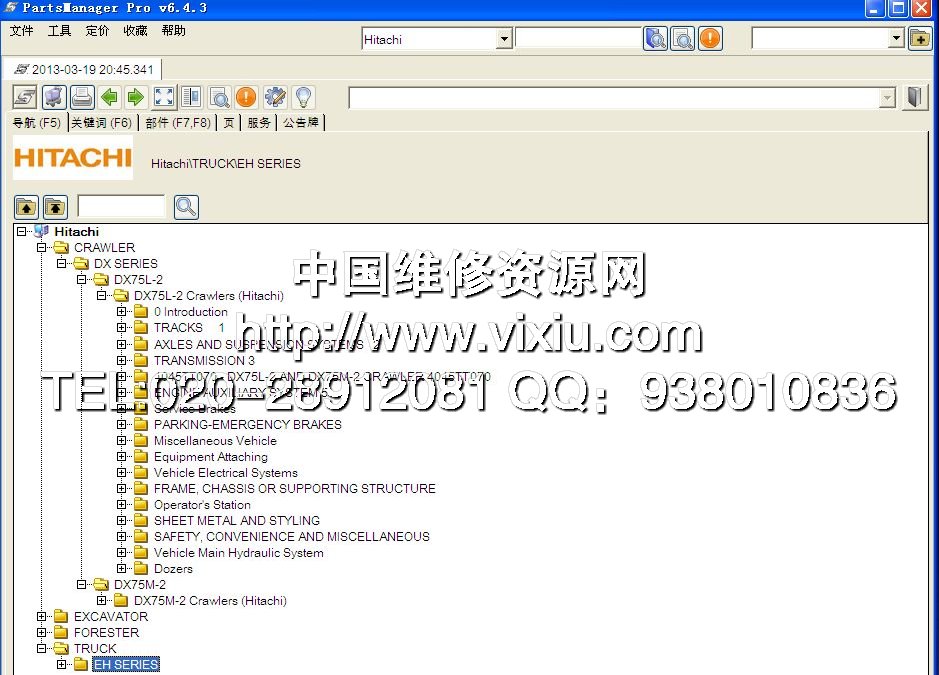 最新日立可查配件参数的元件系统,数据时间为2013年3月,无限安装,无须注册。