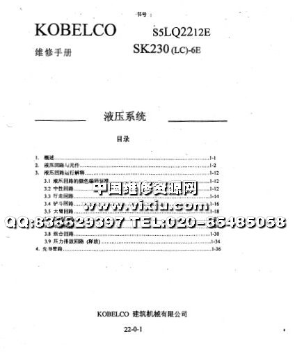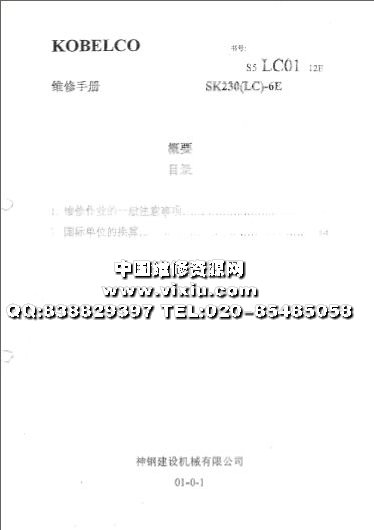 神钢SK230(LC)-6E挖掘机维修装修手册