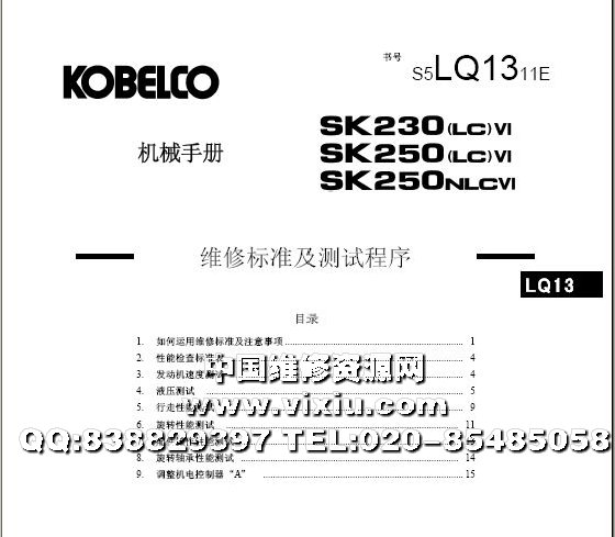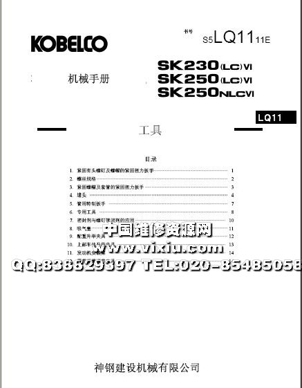神钢SK230,SK250(LC,NLC)挖掘机维修资料手册详细资料