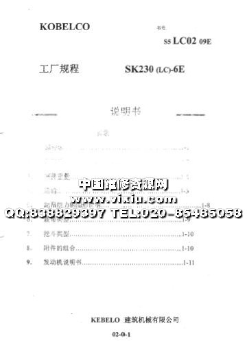 神钢SK230(LC)-6E挖掘机维修装修手册