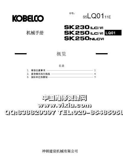 神钢SK230,SK250(LC,NLC)挖掘机维修资料手册