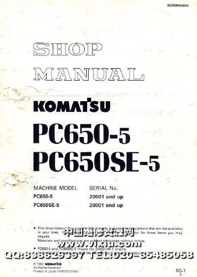 小 松PC650-5,PC650SE-5挖掘机维修资料手册