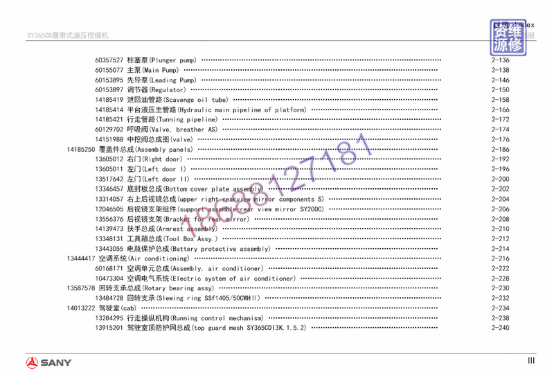 三一SY365CD系列三一维修资料装修手册技术手册液压电气原理图电路图图书详细资料
