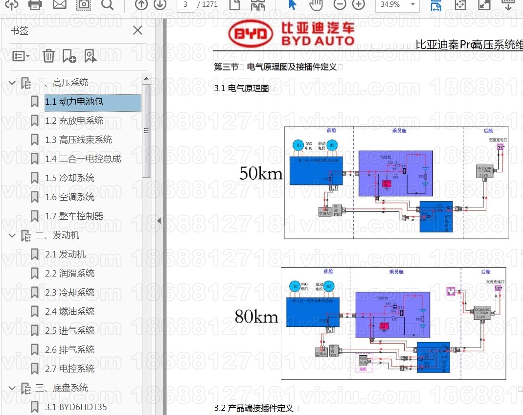 2020款比亚迪秦Pro DM超能版插电混动新能源汽车维修手册带全车电路图详细资料