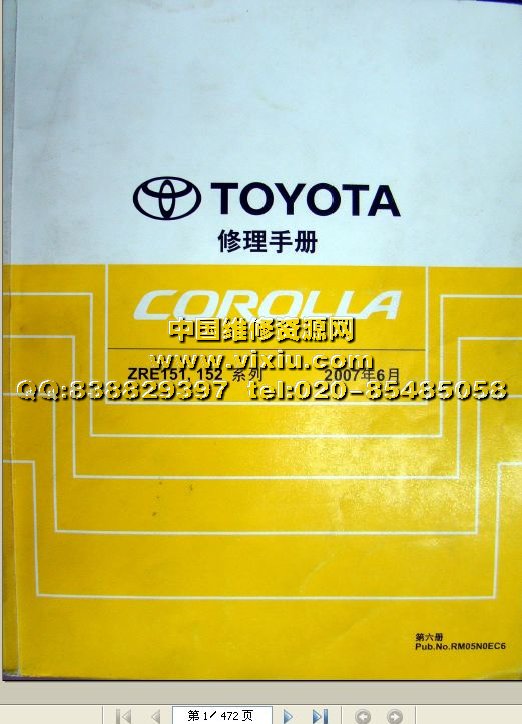 2010一汽丰田卡罗拉维修手册 维修资料全套七册