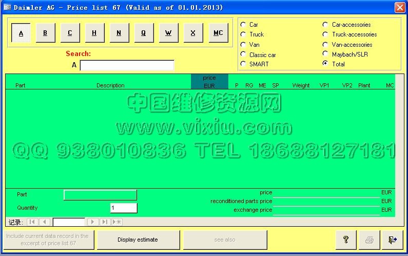 最新奔驰价格查询系统,英文版本,百M以上,可以在线传送。