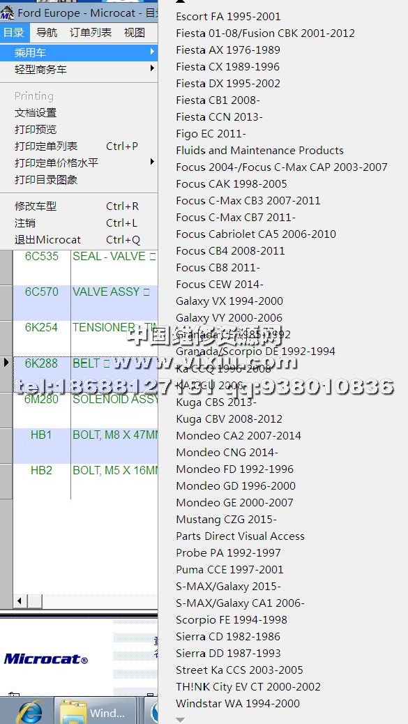 2016年10月福特欧洲车型配件目录资料查询系统