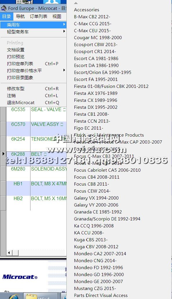 2016年10月福特欧洲车型配件目录资料查询系统详细资料