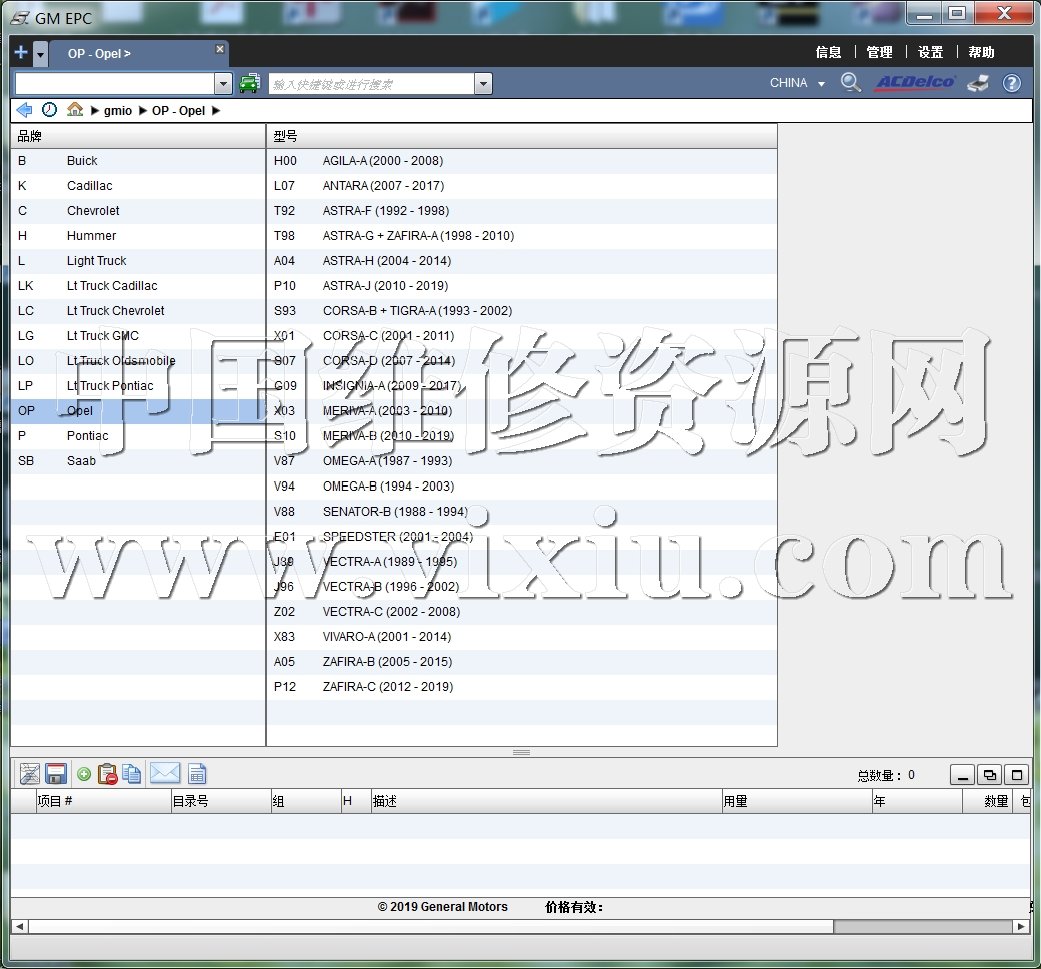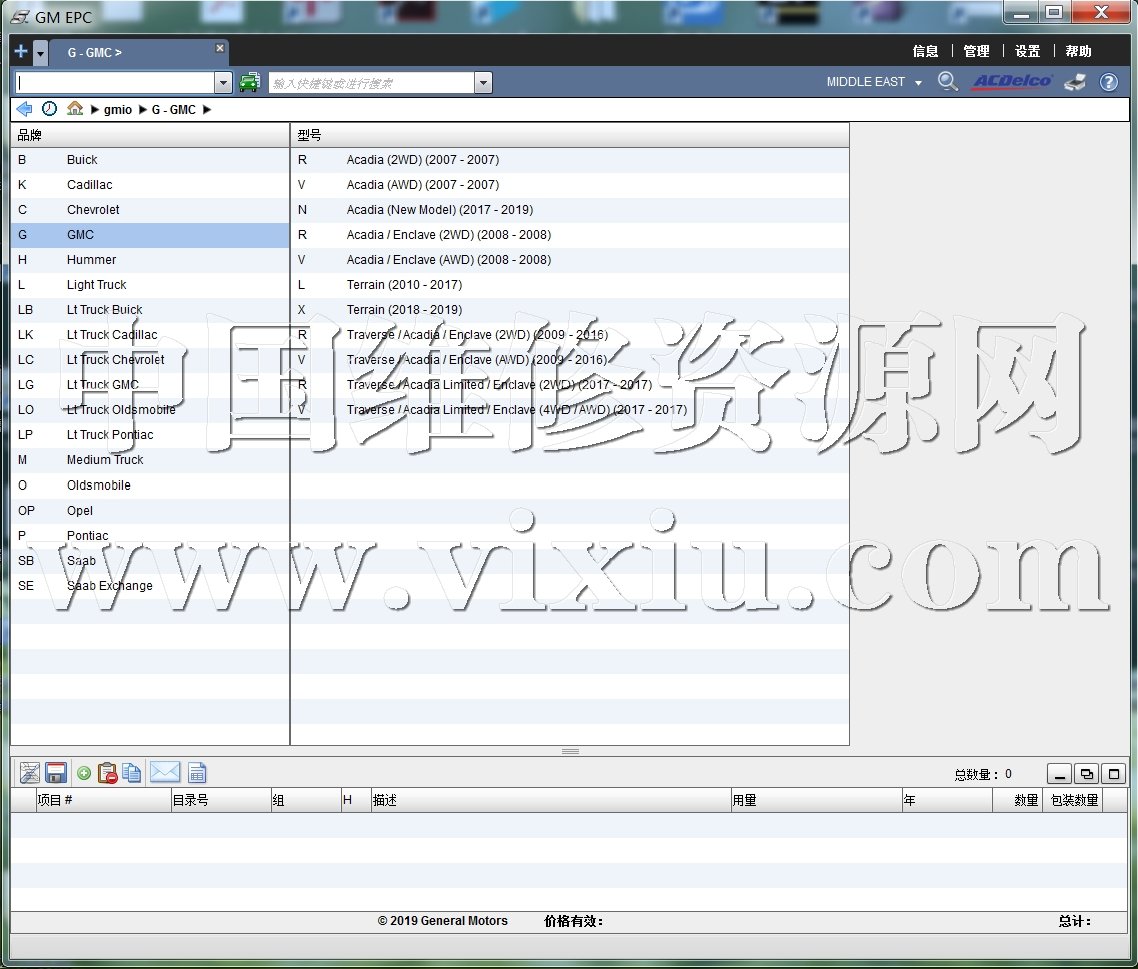 2019年通用别克雪佛兰凯迪拉克欧宝GMC等全球地区版配件目录零件图册系统
